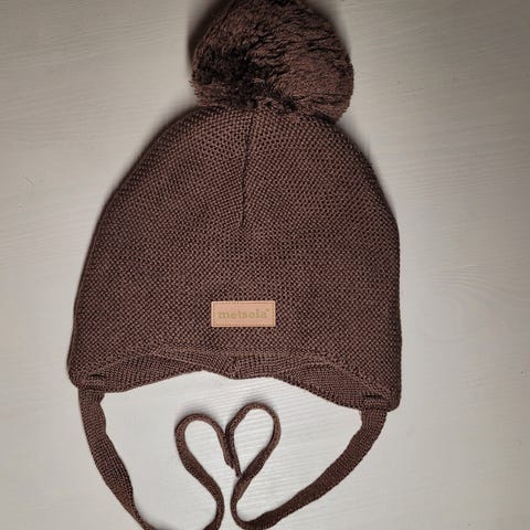 Vaaleanpunainen lippapipo tupsulla. Erittäin siisti, nauhoissa ei rispaantumaa ja neuloksessa ei nukkaa tai langannousuja. Tupsu myös siisti. Koko 6-12 kk. Päältä 100% merinovillaa ja vuori 100% puuvillaa.