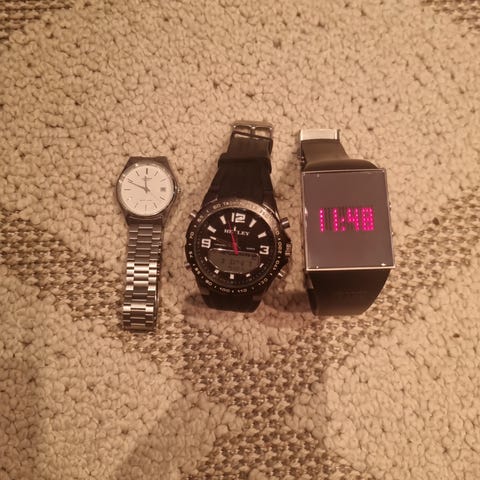 Pulsar. Rannekkeessa turvaketju, pikalukkoja ja lyhentämismahdollisuus. Leijona ilman ranneketta. Molemmissa paristo loppu. Yhteishintaan