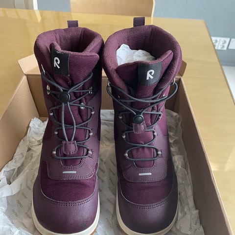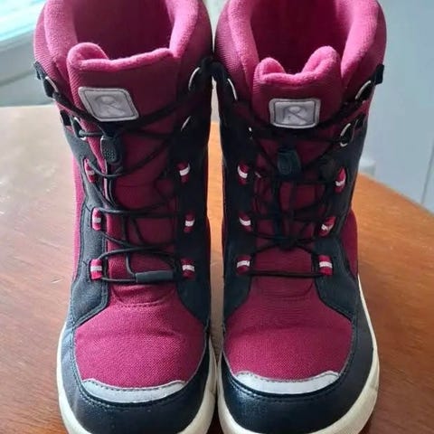 Käytetty yhden talven. Toisessa saappaassa pieni kohta, josta väri on kulunut pois (näkyy kuvassa). Muuten saappaat ovat hyväkuntoiset, lämpimät ja vedenpitävät.