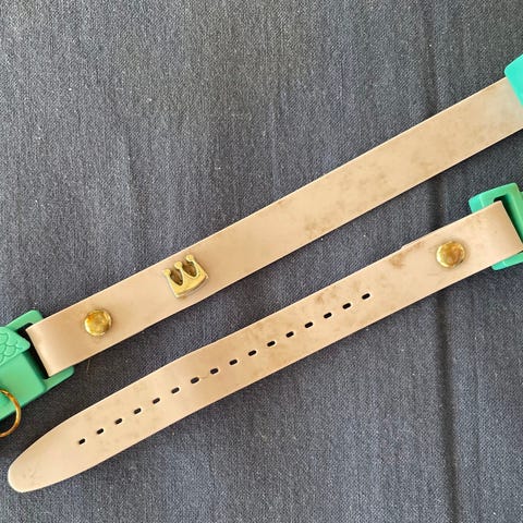 Vihreäsävyinen säädettävä kaulapanta kissalle tai pienelle koiralle.