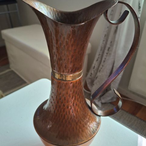 Kaksi hieman erilaista kuparista ruukkua. Halkaisija matalammassa 14cm, korkeus 10cm. Korkeamman halkaisija 13cm ja korkeus 12cm.
