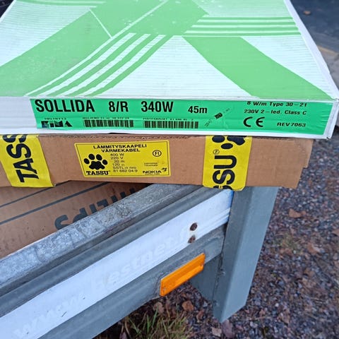 Lämmityskaapeli ylimääräsenä oisko 7 eri pituusia, yhteensä noin 500metriä.