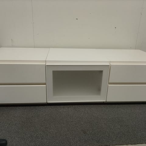 Muuramen Tv-taso. Pituus 156 cm ja korkeus sokkelin 10cm kanssa 37.5 cm koppi ovet. Toimitus järjestyy