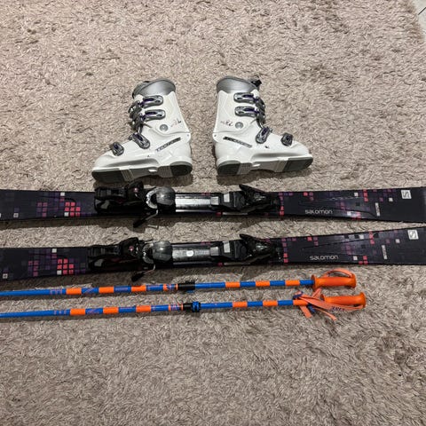 Suksissa ja monoissa käytön jälkiä. Voiteet pohjaan ja rinteeseen.