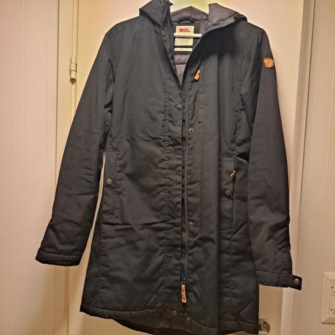 Muutaman vuoden vanha Fjällrävenin Kiruna Parka. Koko L. Takki on täysin ehjä. Mutta väri on paikoin haalistunut.