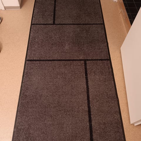 Myydään kaksi uudenveroista harmaa-valkoista mattoa puuvillapaperinarua. Jämäkät. Kaksipuoliset, voidaan käyttää molemminpäin.