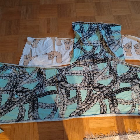 Myydään kuvan kangaspalat, osa esipesty hajusteettomasti.