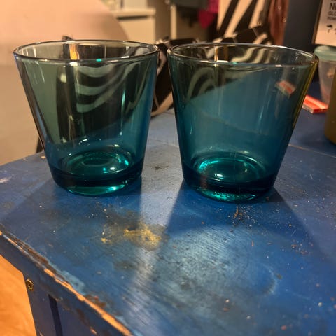 Iittala siniset lasit, joissa on 2 eri kokoja. 12kpl pieniä ja 8kpl isoja