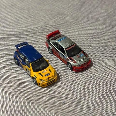 Kunto kokonaisuutena hyvä käytetty: pientä leikkijälkeä ja maalinnaarmua löytyy lähempää katsoen, mutta molemmat autot ovat ehjät ja rullaavat hyvin. Nämä ovat selvästi normaaleja pikkuautoja suurempia, näyttävät kivalta hyllyllä tai lapsen leikeissä. Sopii sekä leikkiin että keräilyyn.