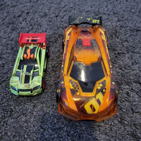Kunto kokonaisuutena hyvä käytetty: normaalia leikkijälkeä ja pientä maalikulumaa siellä täällä, mutta kaikki autot ovat ehjiä, renkaat pyörivät ja alustoissa ei murtumia. Nämä ovat saman sarjan autoja, näyttävät tosi kivalta yhdessä – käyvät sekä leikkiin että vaikka hyllyyn koristeeksi.