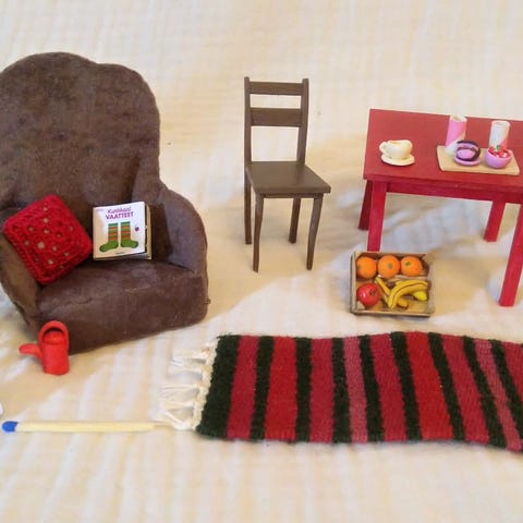 1:12 nukkekodin ruokapöytä ja kuusi tuolia. Hp 15e + postit 9,90e
