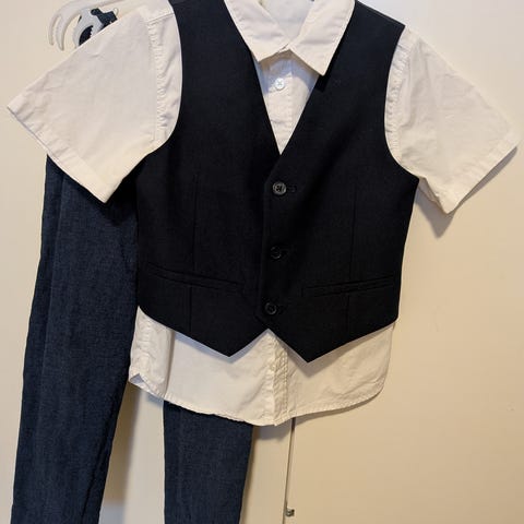 Siistikuntoinen H&M:n pojan vaalensininen juhlapuku, jossa myös liivi. Käytetty muutaman kerran. Koko 110.