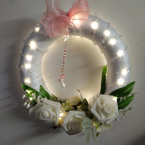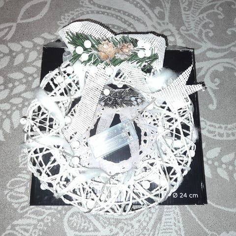 Valkoinen valokranssi, 30cm, paristot sis. Sisäkäyttöön, 25€+ postikulut