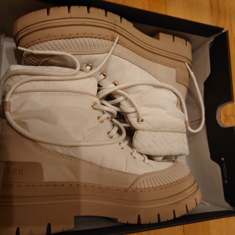 Mustat, kerran kokeillut ja uudenveroiset bootsit. Koko oli oletettua pienempi, eli sopii myös pienempi kokoiselle jalalle. Asoksella 217€. Laatikossa.