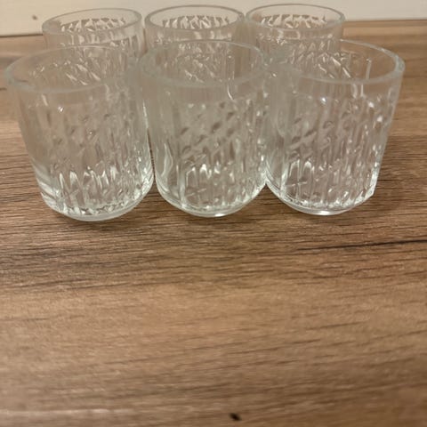 Nanny Stillin värilliset pienet lasit, 6 kpl. Vetoisuus 0,5 dl. Lasit sopivat esimerkiksi shottilaseiksi.