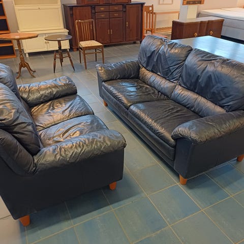 2 kappaletta hienoja viininpunaisia nahkasohvia. Hyvä kuntoisia ja tyylikkäitä