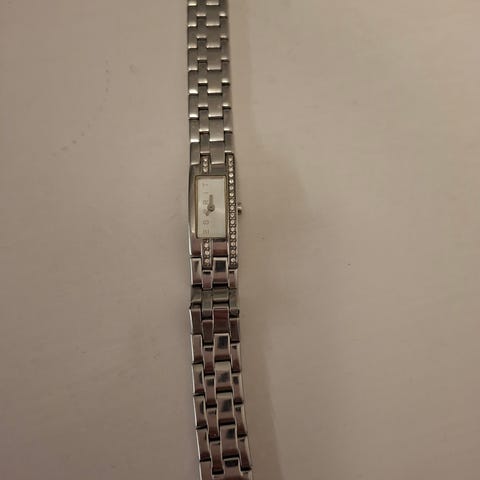 Esprit rannekello koristekivillä. Materiaali ruostumaton teräs. Pituus nyt 16 cm, kaksi jatkopalaa mukana. Patteri uusittava. Ostettu Silja Linelta 2012. Käytönjälkiä.