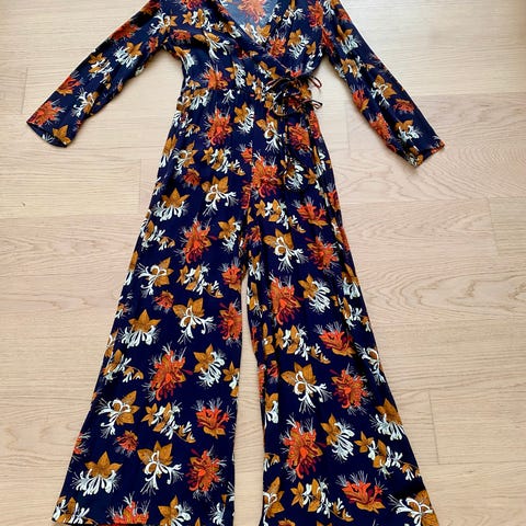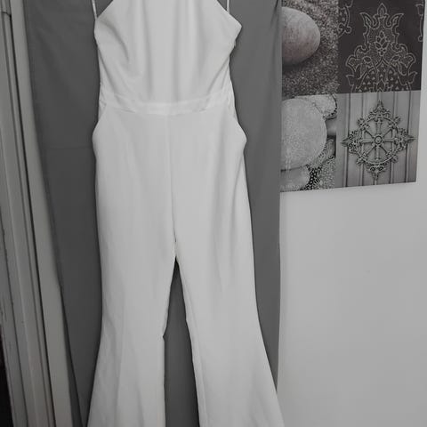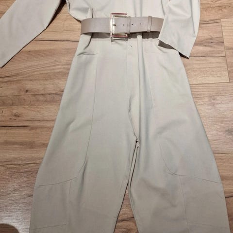Algo haalarimekko, harmaa, koko 36/38. Hihaton, pitkä malli, jossa laskostuva pääntie ja vyö samalla kankaalla. Sopii esimerkiksi juhla- tai iltakäyttöön.