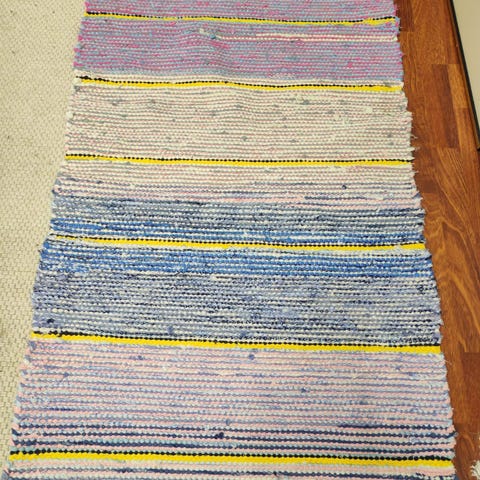 Harmaapohjainen hyväkuntoinen räsymatto 82 x 203.