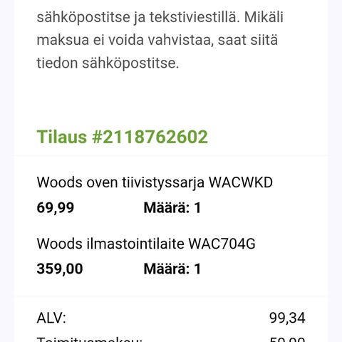 Tehokas kone, mutta ei ole ollut käyttöä meillä. Laite moitteeton kunnoltaan, vain poistoputki puuttuu. Tarpeettomana. Mukaan kaukosäädin.