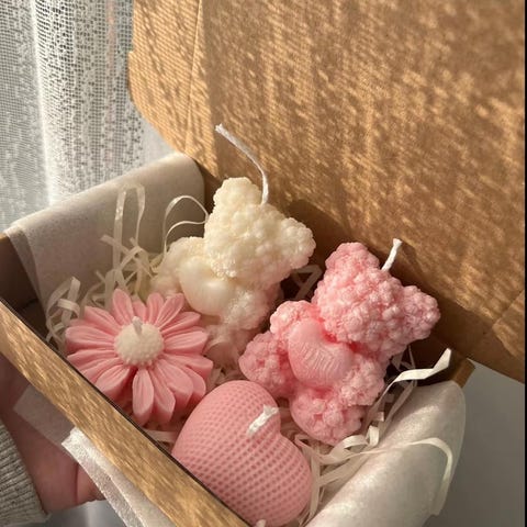 Neljä kpl. Luonnonvalkoisia kynttilöitä koristeena punaisia helmiä.Kaikki neljä kynttilää yhteishintaan 5€