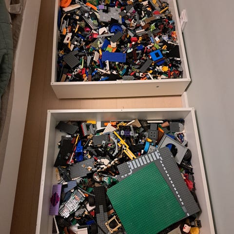 Iso sängynalus laatikollinen sekalaisia legoja. Myös muutama alusta mukana laatikossa. Legot on ostettu v.2010-2020, tarkemmin en muista mitä sarjaa Legot ovat.