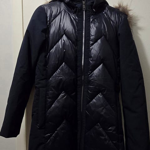 Puolisoni puolesta myymässä. Käyttämätön naisten koon 36 Luhdan talvitakki. Väri musta, takin etuosassa on tyylikästä punaista ja sinistä kuviointia. Hupussa on vetoketjullinen irroitettava tekoturkisreunus ja huppu on myös kokonaan irroitettavissa. Takissa on povitasku, kauluksessa mustaa "turkismaista karvaa, hihassa pieni tasku ja hihojen sisällä käsien ympärille laitettavat lämmikkeet.