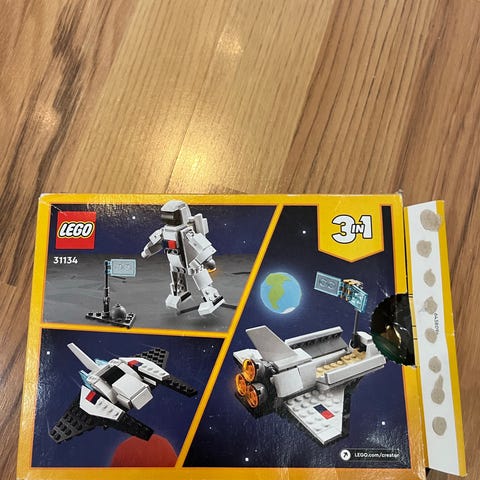 Avaamattomassa pakkauksessa Lego Avaruussukkula, jonka saa myös rakennettua robotiksi ja kiituriksi.