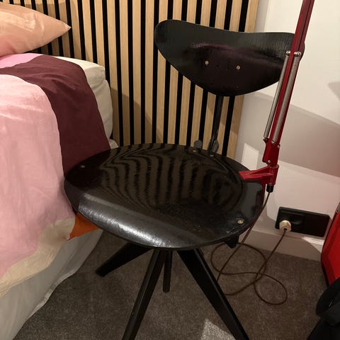 Myydään 70-luvun pyöreästä metalliputkesta ja vinyylisistä ruskeista istuin- ja selkänojista koostuva vanha tuoli, joka on käsittääkseni Tehokalusteen, eli nykyisen Martelan valmistama Bonus-tuoli. Ollut kalliimpi malli, sillä siinä on pallonivelillä säätyvät metalliset tassut tuolin metallijalkojen päissä. Tuolin mitat noin cm: l48,s48,k73. Hieno ja nostalginen tuoli vie muistot 70-luvulle! retro metallirunkoinen 70-luvun antiikki koululuokka isku asko opettajan opettajantuoli istuin penkki vanha ruskea