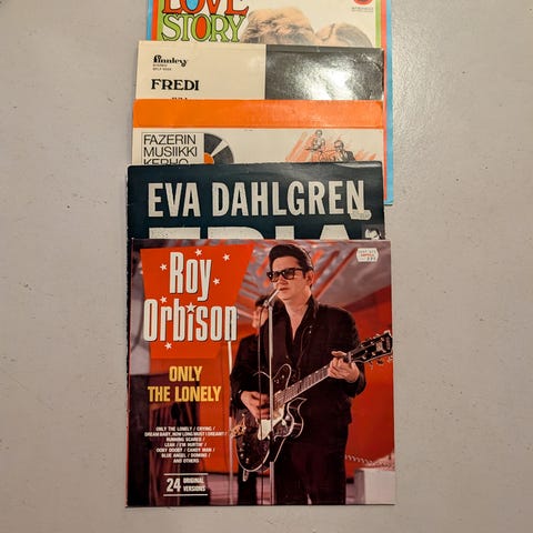 Useita eri artistien vinyylilevyjä kokoelma