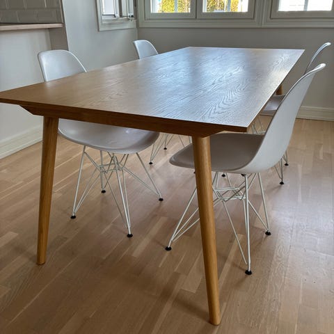 Tuolit ovat käytettyjä ja kulmissa on jonkin verran kulumaa (katso kuvat). Muuten tuolit ovat tukevat ja hyvässä kunnossa.