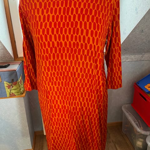 Kerran pidetty ja pesty Huuhkatti Kissapöllö mekko. Kk 60cm ja oh 100cm. 82% viskoosia ja 8% elastaania. Värit yönsininen ja musta. Läpivärjättyä trikoota joten ei kerää pesuhahtua. Joustaa ja on todella mukavan tuntuinen. Itselle väärä väri.