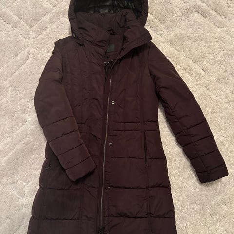 Puolisoni puolesta myymässä. Käyttämätön tumman sininen Luhdan talvitakki. Koko 34. Hupussa on vetoketjullinen irroitettava tekoturkisreunus. Huppu on kokonaan irroitettavissa (kiinni napeilla). Takissa on povitasku ja edessä kaksi vetoketjullista taskua.