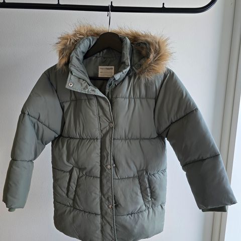 Talvitakki yhden tytön käytöstä. Koko 128. Käytöjälkiä/kulumaa lähinnä hihansuissa ja ihan takin helmassa.