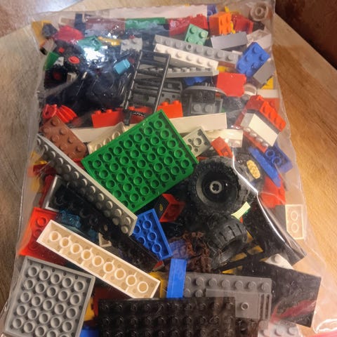 Myyntiin pieni lego-laatikko ja siihen kuuluvat palaset (muutama puuttuu). Laatikossa voi hyvin säilyttää pientä legomäärää n. 3L.