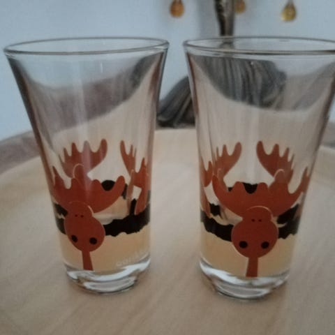 Aarikan lasiset viinilasit, 2 kappaletta. Lasit ovat kokonaan kirkasta lasia.