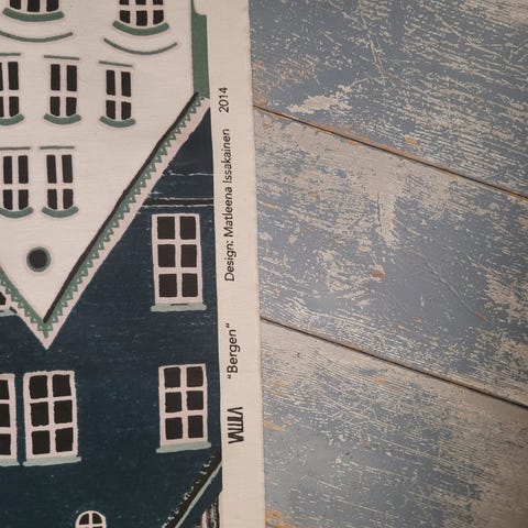Myydään kaunis Vallilan kangaspala 115 × 110 cm. Kangas on ollut meillä seinällä tauluna styroksilevylle kiinnitettynä ja on edelleen erinomaisessa kunnossa.