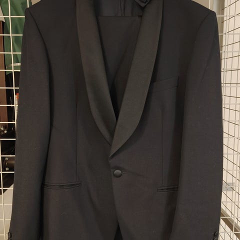Myydään Ted Baker -smokki (takki 42L, housut 36L) ja Cavaliere-smokkipaita (M).