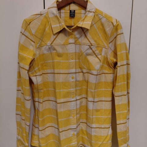 Naisten hyväkuntoinen nepparikiinnitteinen lyhythihainen paitapusero, koko M. Paidassa on muotolaskokset ja kangas joustaa jonkin verran. KAI-KAI -mitta on n. 45 cm ja vyötärö n. 38 cm. Valmistaja Helly Hansen.