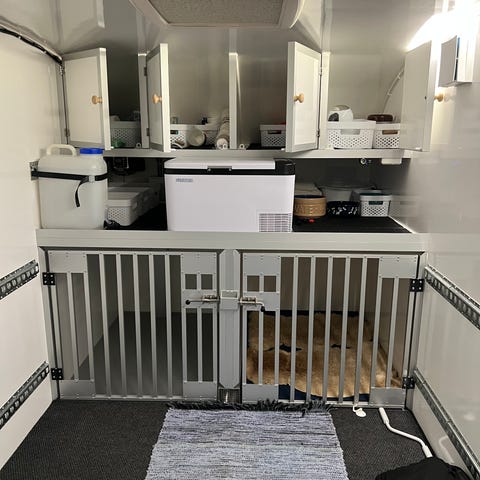 Kärry on valmis lähtemään suoraan uusille reissuille näkemään hienoja maisemia. Retkikärry on varusteltu ja säilytetty lämpimässä tallissa.