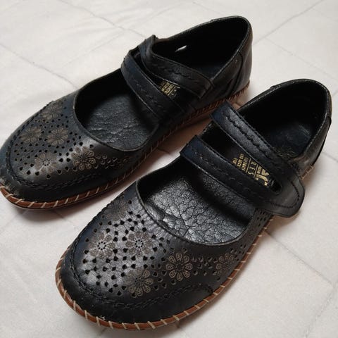 Myydään ehjät, siistit ja vähällä käytöllä olleet Rieker mustat "ryppy"nahkaiset kengät.