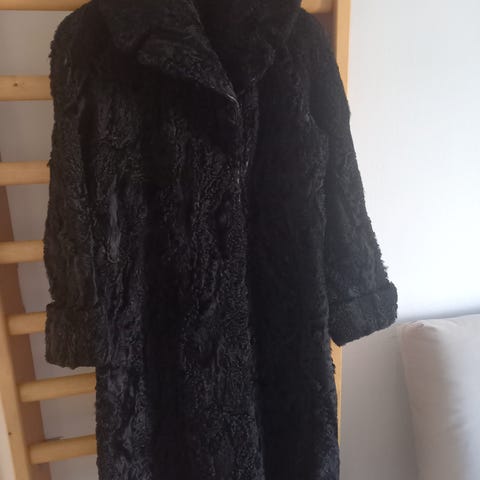 Siisti, hyvä, musta krimiturkki. Ei haise pahalle, säilytetty aina lämpimässä. Koko ainakin M ellei L. Sispuolelta selän kainalo-kainalo mitta 60cm. Sisävuoressa sanomista, pikku reikiä ja sivussa rispaantumisalku, mutta kestää ainakin tämän talven. Tästä käyttöön tai talven tuunauksiin.