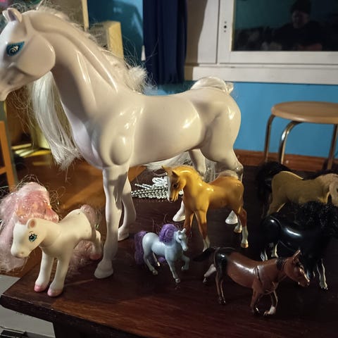 Schleich Hevoslelusetti sisältää kolme hevoshahmoa: kaksi aikuista hevosta ja yhden varsan. Lelut on valmistettu kestävästä materiaalista. vähän käytetyt! hieman kulumajälkeä, mutta ei paljoa. TARJOTKAA!!!