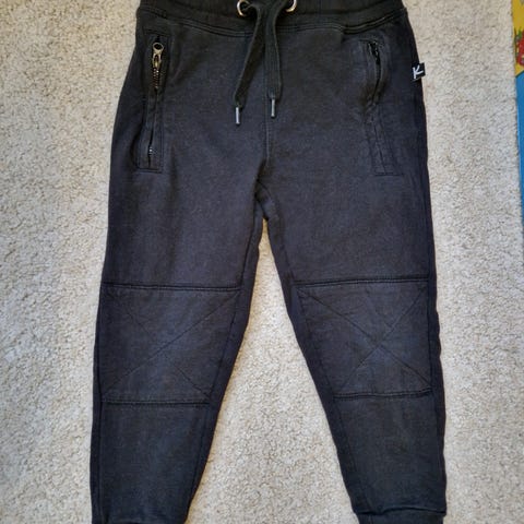 Mustat Keikin peruscollegehousut. Musta väri vielä suht hyvässä kunnossa, ei reikiä. Koko 100, oli käytössä 98/104. Hinta 2€.