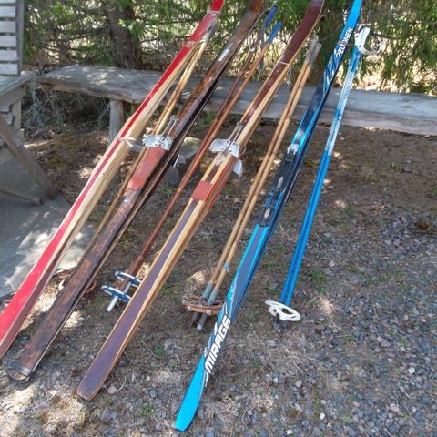 Tarjoa! Vanhoja suksia ja parit sauvat, yhdet normikenkiin käyvät sukset