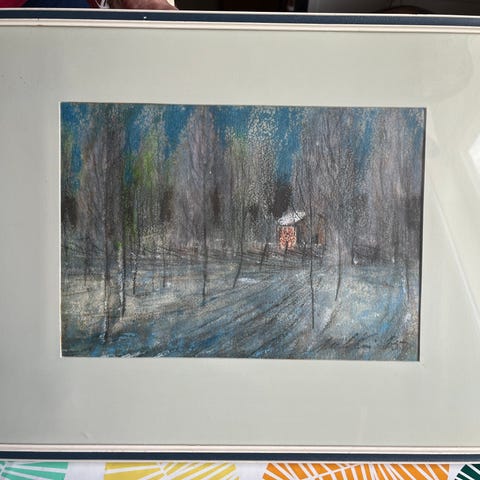 Taulu 60-luvulta, taustassa onnitteluteksti