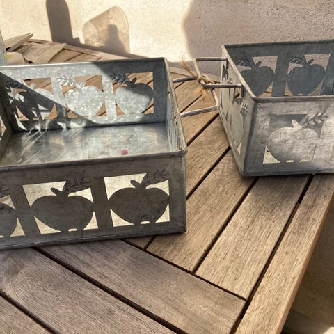 Kuin uusi monikäyttöinen kori sisustukseen, säilytykseen tai vaikka puutarhaan. Galvanoitua terästä, tilavuus 35 litraa, halkaisija 42 cm, korkeus 33 cm. Clas Ohlsonilta. Nouto Kauniainen/Sello/Iso Omena.