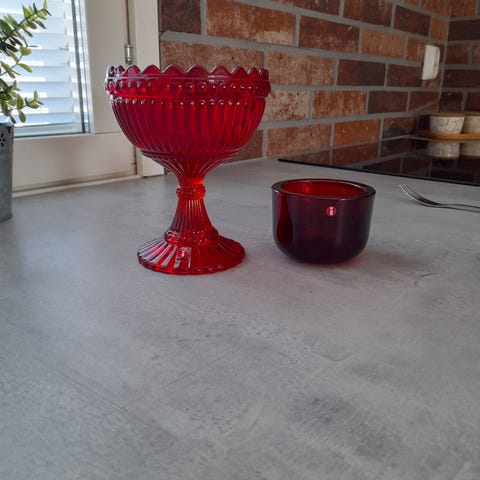 Iittala Mariskooli jalallinen lasikulho, väriltään punainen,tummempi jalkaosa