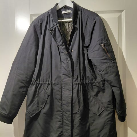 Gina Tricot tikattu takki naisille, koko 44, oversize XL. Takki on valmistettu polyesteristä ja on luonnonvalkoinen. Siinä on nappikiinnitys ja kaulus. Sopii käytettäväksi viileämmällä tai myös leudommalla talvisäällä. Pinta on vähän vettä hylkivää.
