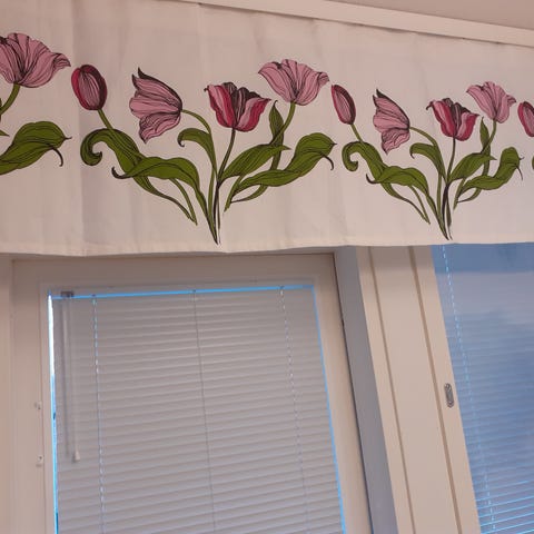 Vallila Kukkakuvioinen verhokappa, tummansininen pohjaväri ja vaalean liilat kukkakuviot. Materiaali puuvilla ja tarkat mitat 60x250cm. Hyväkuntoinen ja siisti, nouto Kannelmäestä, sovitusti kaupat jossain päin pk-seudulla tai toridiilin kautta postitus.